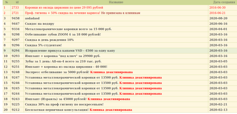 Если клиника пропала из списка Докдок, то у нас у нее просто отключается заявка